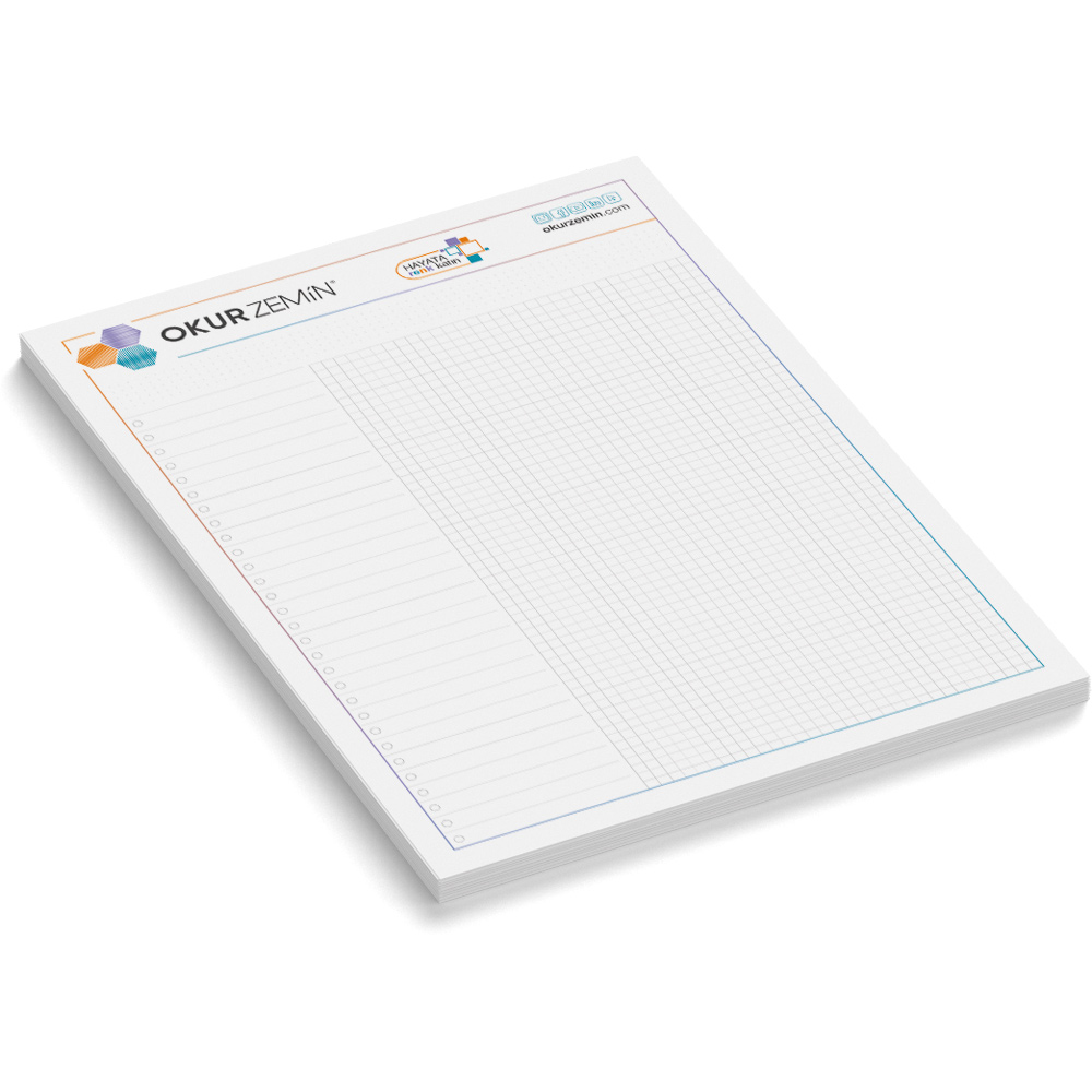 * Ebat: A5 / A4 / A6 * Kapak: 270 gram Amerikan Bristol * Selefon: Mat / Parlak Yaprak Sayısı: 50 * İç Kağıt: 80 gram 1. Hamur, Tek yön baskı * Perforaj: Üstten +: Destek Kartonu