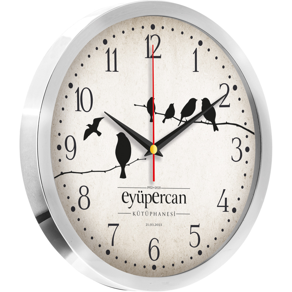 * Ebat: 30 cm * Çerçeve: Paslanmaz Metal * Kadran: Bristol * Saniye: Akar * Cam: Mineral * Baskı: Ofset, Dijital, * Koli Adeti: 20