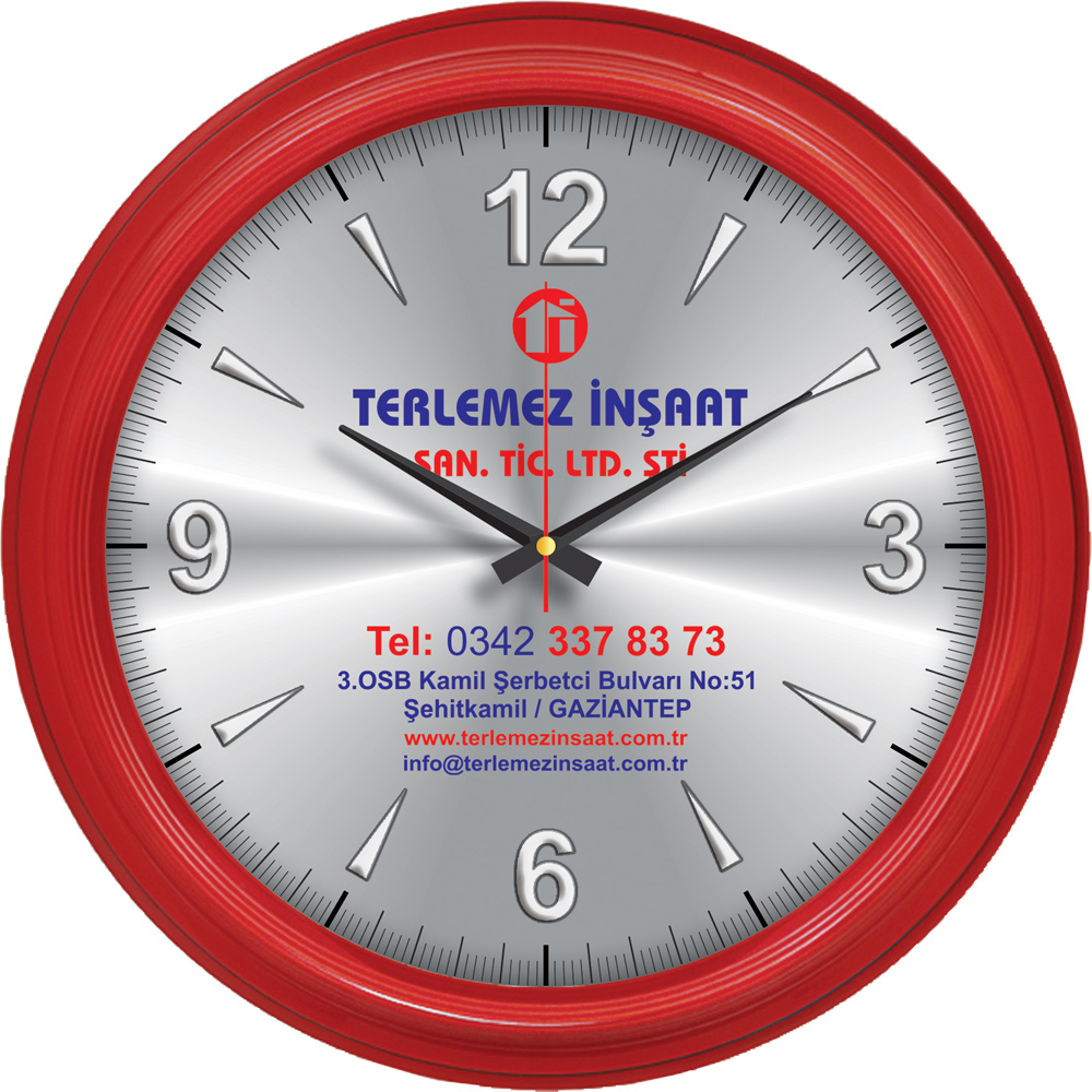 * Ebat: 32 cm * Çerçeve: Plastik * Kadran: Metal * Saniye: Akar * Cam: Mineral * Baskı: Serigrafi, UV * Koli Adeti: 20