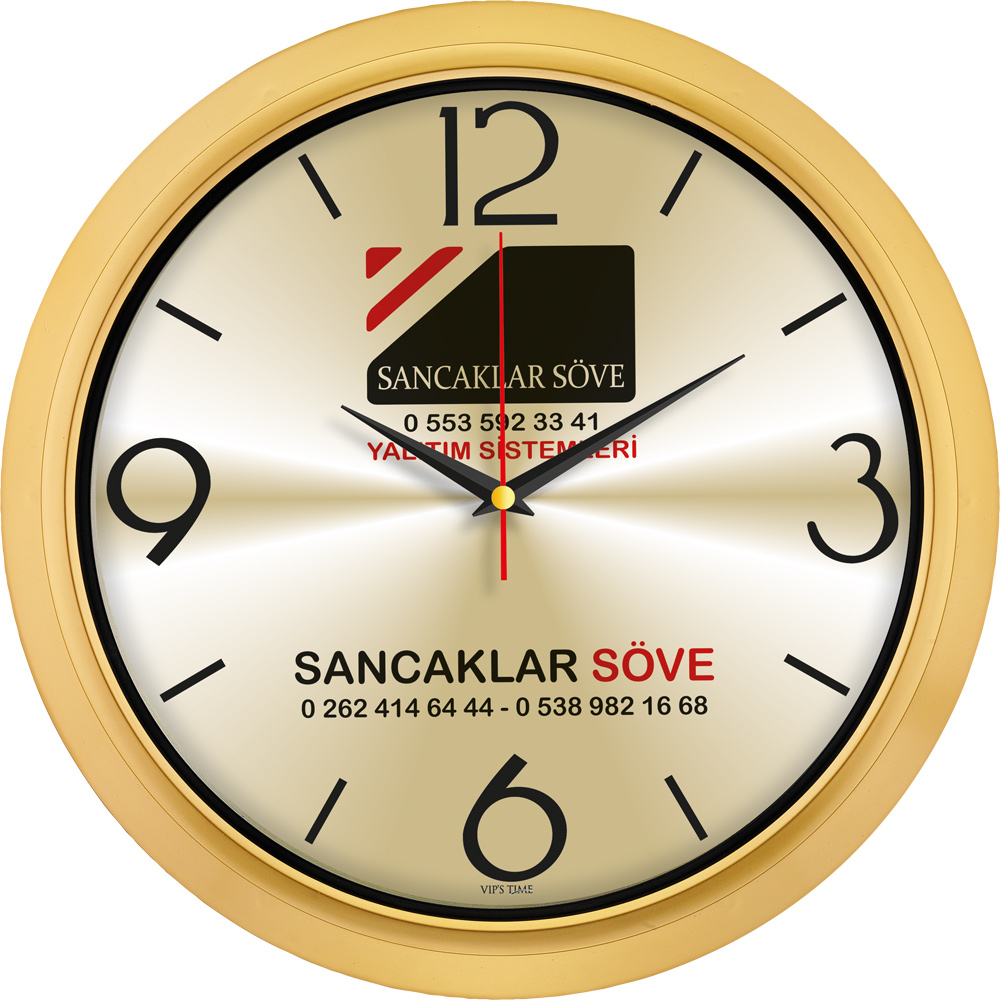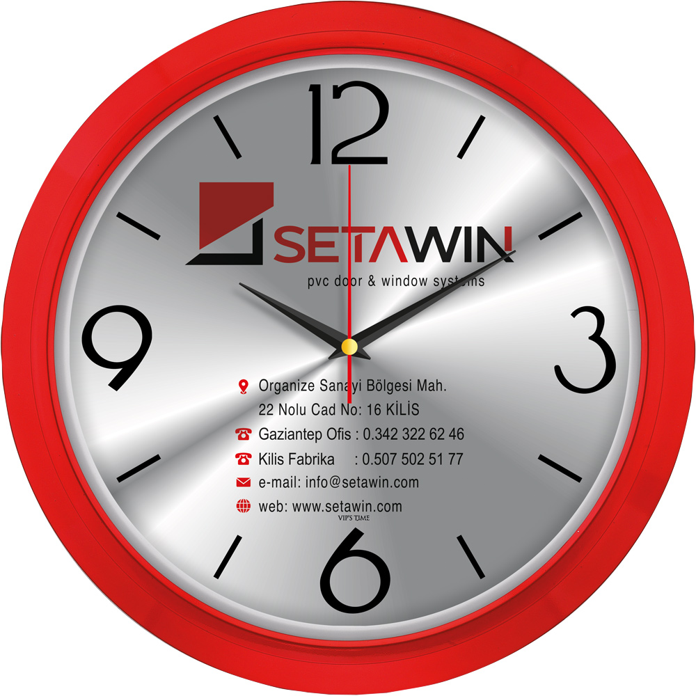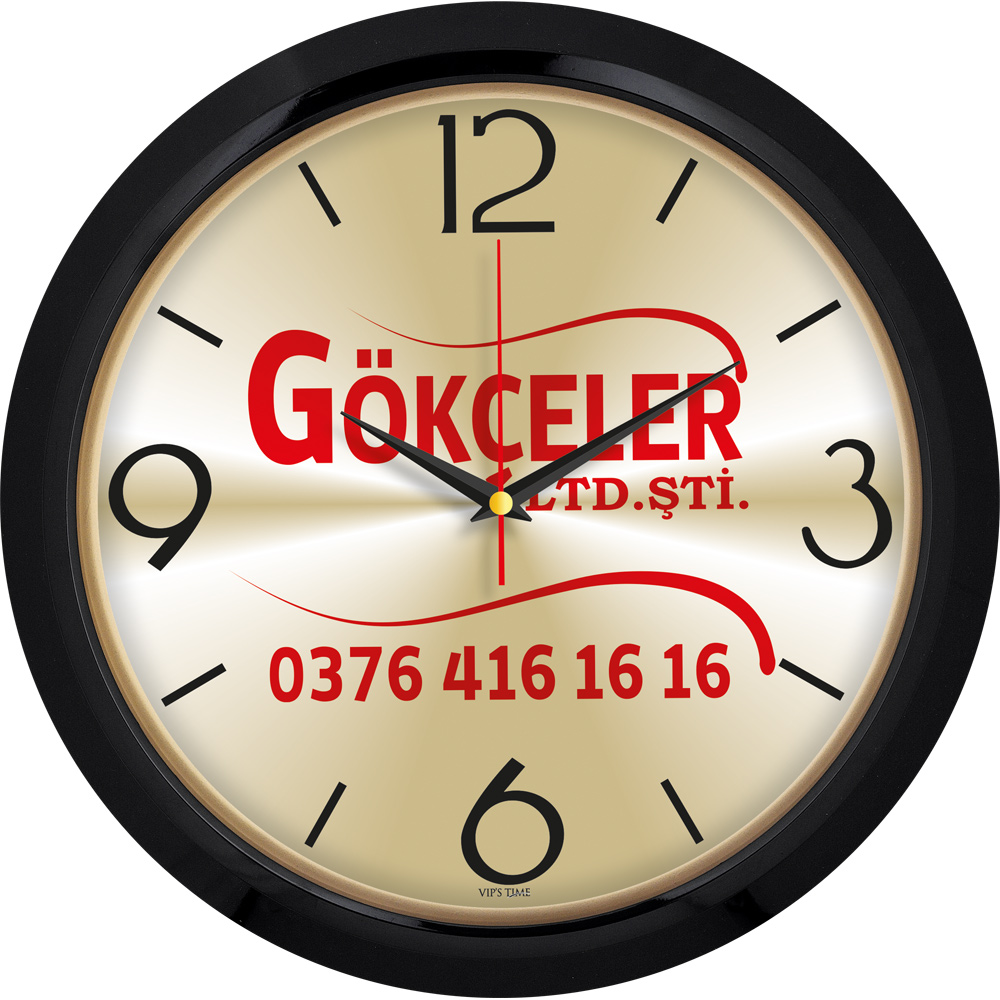 * Ebat: 35 cm * Çerçeve: Plastik * Kadran: Metal * Saniye: Akar * Cam: Mineral * Baskı: Serigrafi, UV * Koli Adeti: 20
