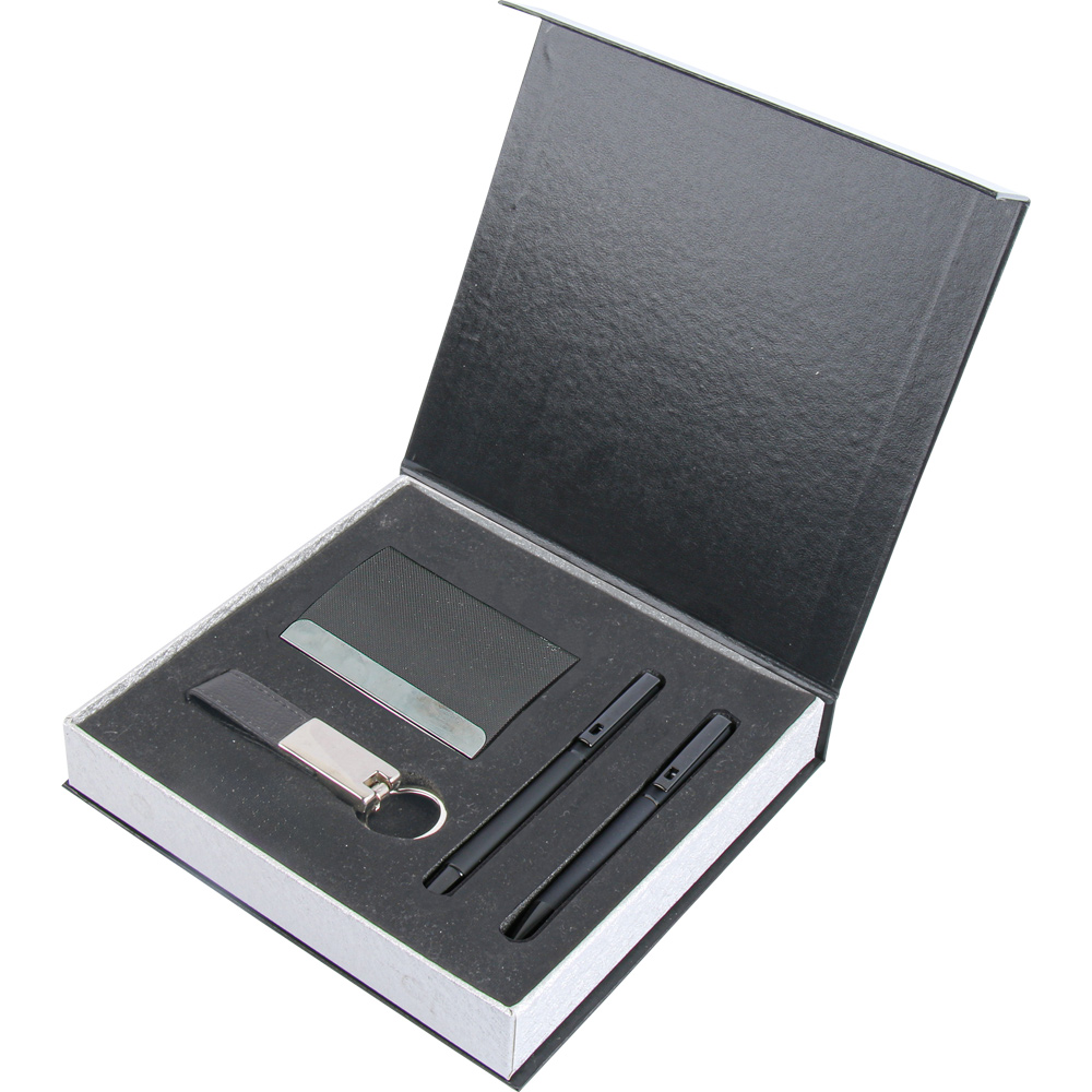 * Metal Kalem Roller ve Tükenmez Kalem (0555-480 / 0555-490) * Deri ve Metal Anahtarlık (AN-5285) * Deri ve Metal Kartvizitlik (KVZ-002) * Kutu: Cilt Bezi